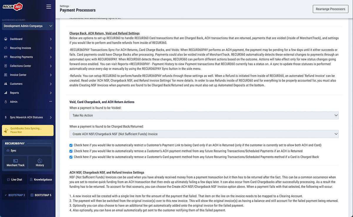 Get StartedEasily process voids or refunds for Recur360 payments without leaving Recur360, with updates applied automatically to QuickBooks and payment processor records.